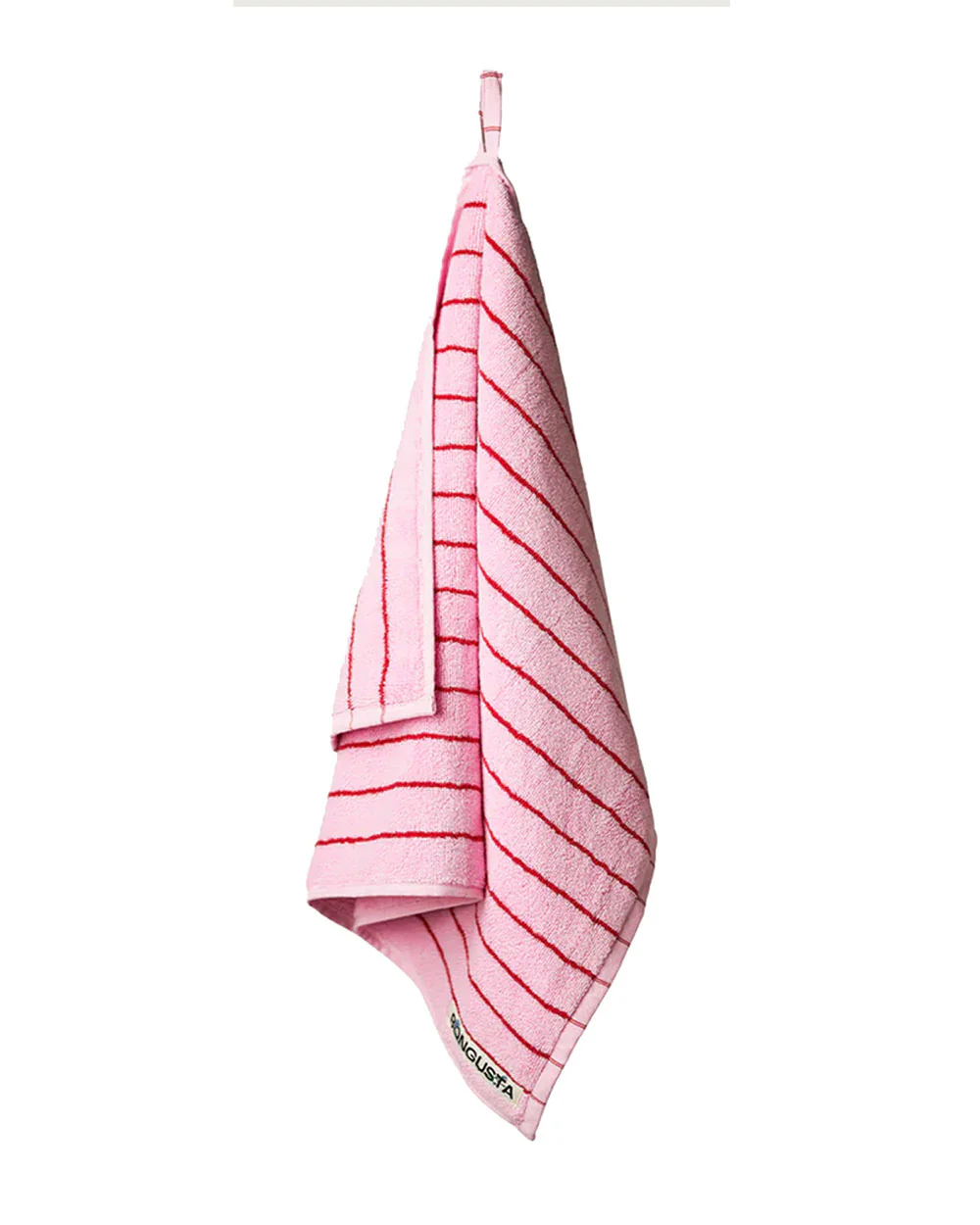 Auf der Vorderseite des Naram Towel ist ein dekoratives Logo des Labels Bongusta aufgestickt, das dem Design einen Hauch von Eleganz verleiht. Das Handtuch hat eine dicke Frotteeoberfläche über die gesamte Fläche, die ein weiches und angenehmes Gefühl auf der Haut gewährleistet. Das Handtuch ist mit einer praktischen Schlaufe zum Aufhängen ausgestattet.